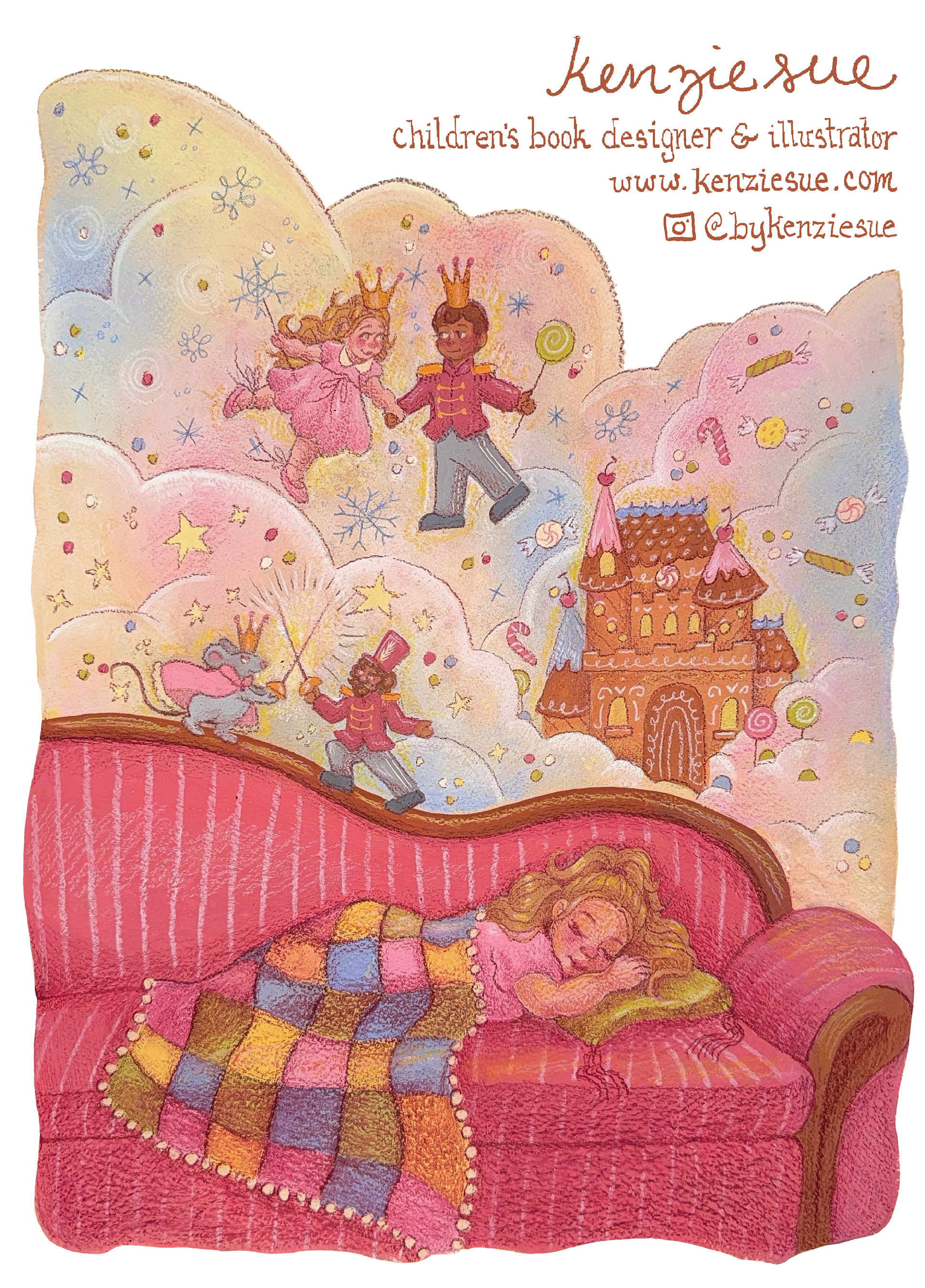 This is my #KidLitPostcard and #SCBWIDrawThis entry for January of 2026. The SCBWI prompt was “Dream”, so I opted for a Nutcracker inspired illustration. This illustration was also used for personal branding and advertising.